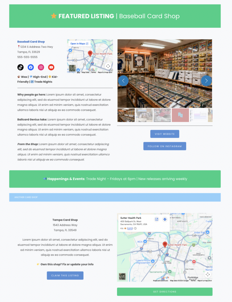 Last Time Ago LLC dba Ballcard Genius: We offer post sponsorships, directory upgrades, improved directory list ranking and visibility, banner ads, and more. If interested in advertising, have questions or need more info, please get in touch.